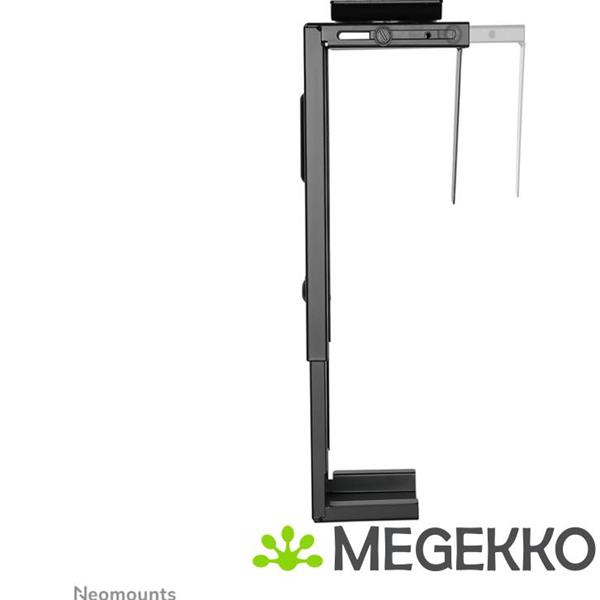 Met deze Neomounts CPU houder, model NM-CPU100BLACK, monteert u een CPU eenvoudig onder een bureau. Met een CPU houder creëert u meer ruimte op het werkblad, doordat de CPU kast onder uw bureaublad wordt gehangen. Op deze manier beschermt u de CPU tegen stof, vuil en diefstal. Tevens kan de werkplek beter schoongemaakt worden. De meeste van onze CPU-houders kunt u zowel horizontaal als verticaal ophangen en zijn ook goed te combineren met kabelmanagement. Op deze wijze ontstaat een efficiënte, veilige en opgeruimde computerwerkplek. De CPU houders zijn eenvoudig in breedte en diepte te verstellen. Hierdoor passen desktop en tower PC's eenvoudig in de steun. In de specificaties treft u de maximale en minimale breedte en diepte van de steun aan.